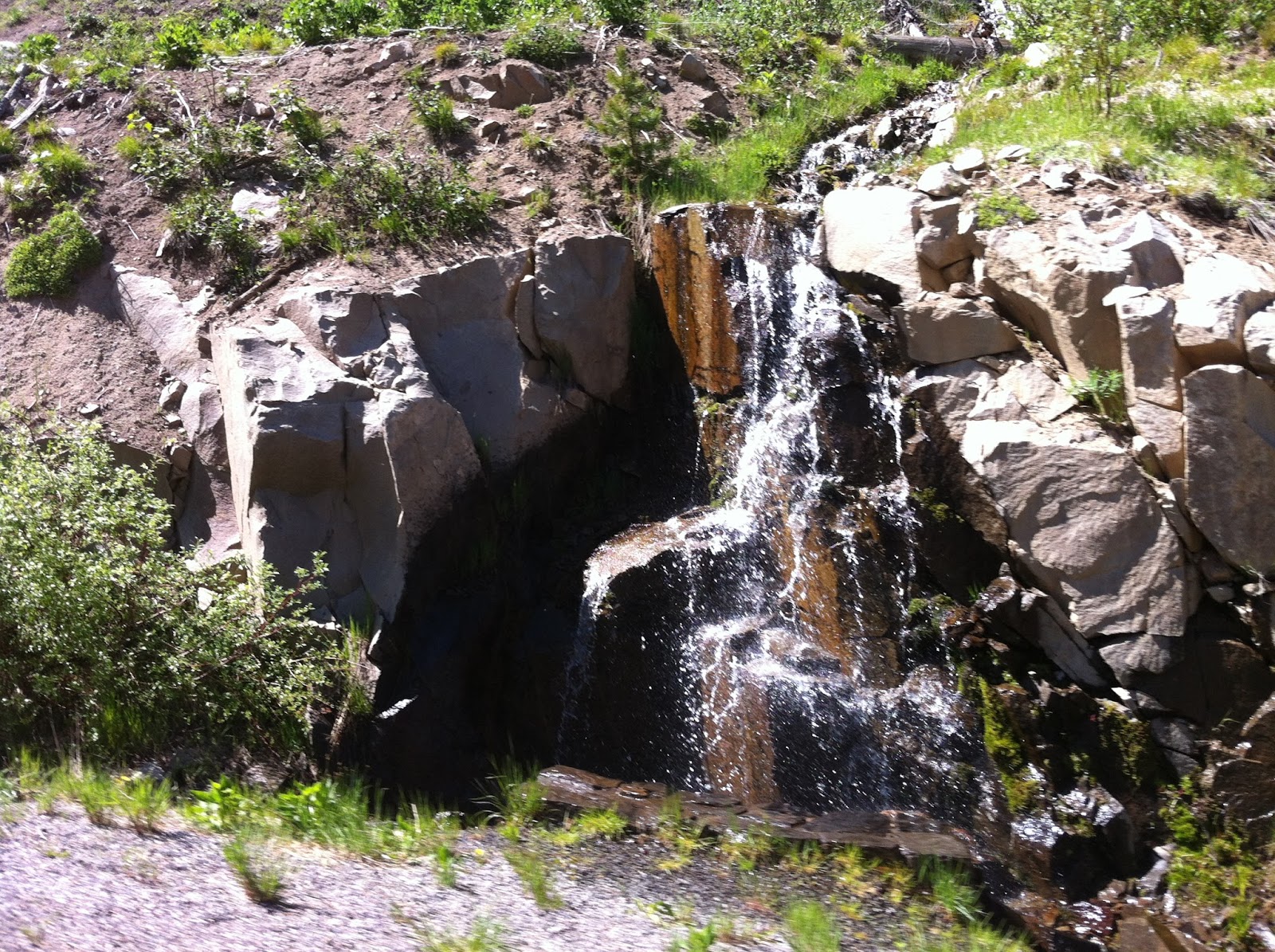 Lots of mountain roads getting out of the Glacier area and Gretchen just barely managed to avoid offering up her breakfast. But we pulled off in a beautiful valley next to a mountain stream. Bitterly cold, but picturesque.
